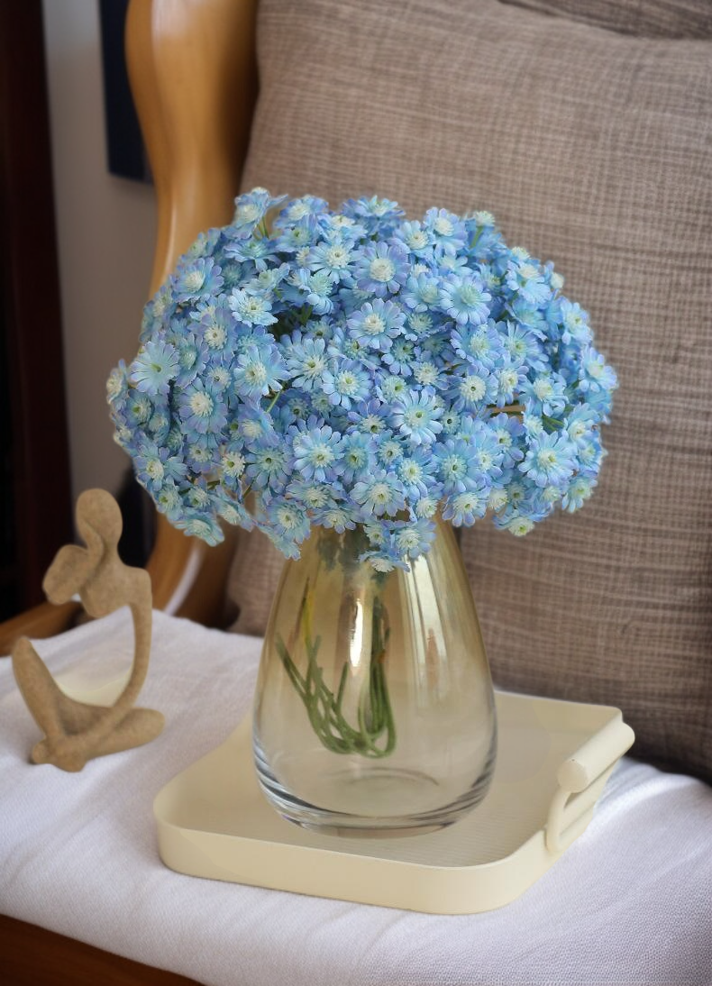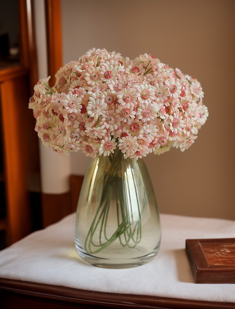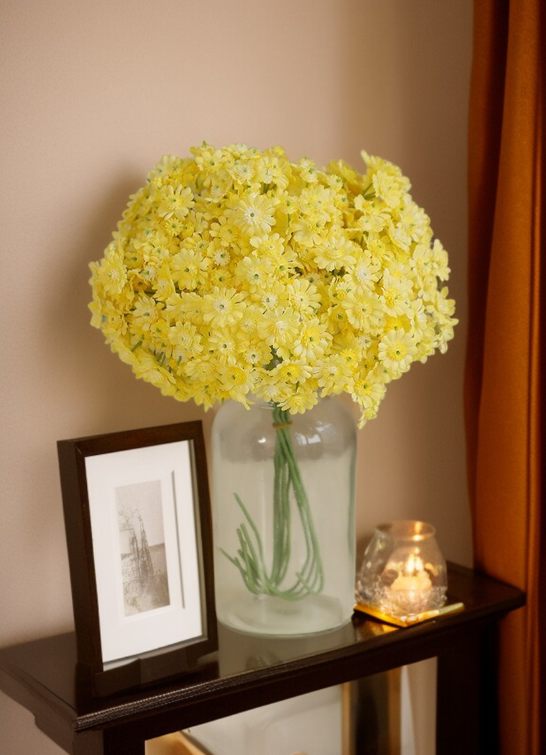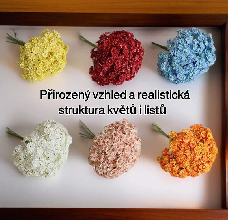 Umělá kytice divokých chryzantém, realistický vzhled, vhodné pro domácí dekoraci, dlouhá životnost, bez nutnosti údržby, ideální jako dárek.