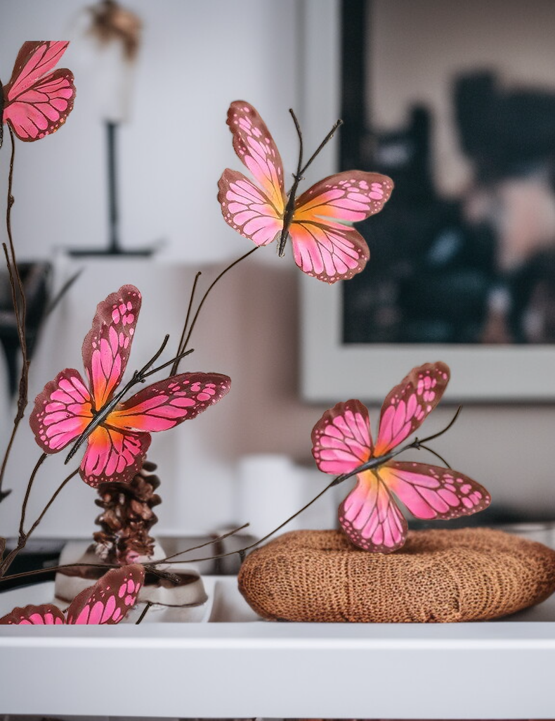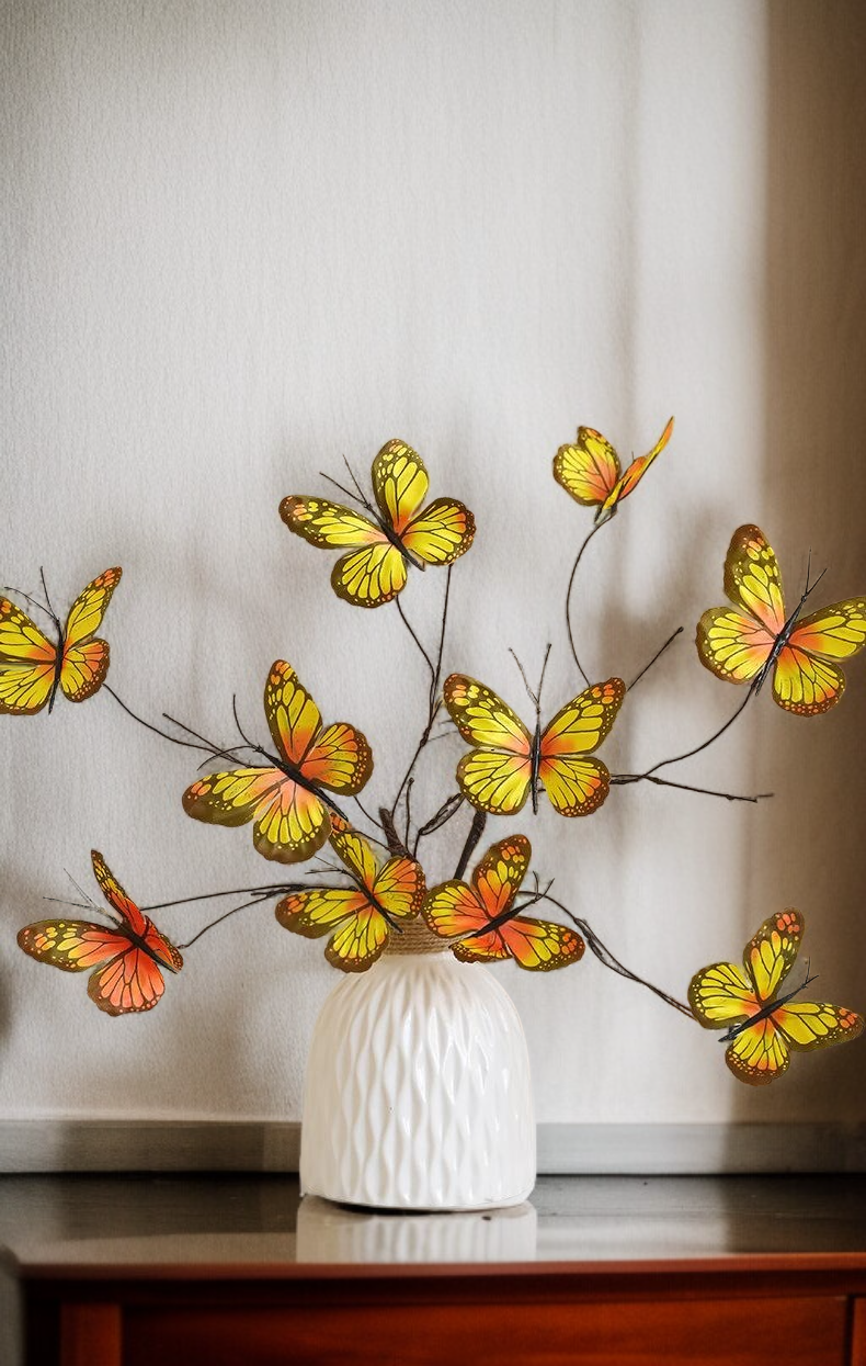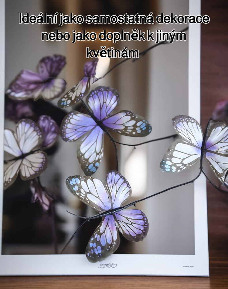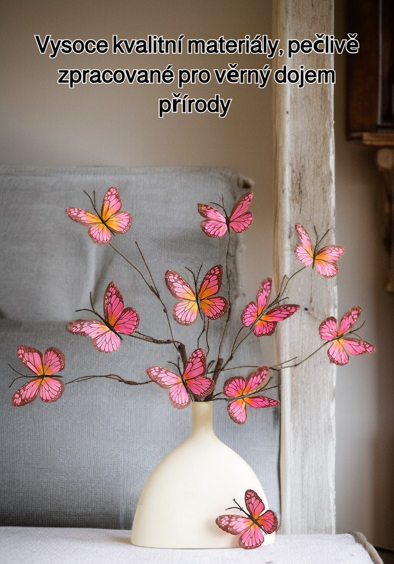 Umělé květiny motýlů vhodné pro dekoraci interiéru, dlouhá životnost, bez nutnosti údržby, realistický vzhled, ideální jako dárek nebo ozdoba do bytu.
