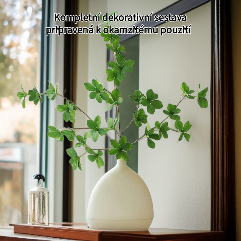 Realistické zelené rostlinné dekorace do obývacího pokoje, bezúdržbové, vhodné pro každý interiér, dlouhá životnost, snadná instalace, ekologické materiály.
