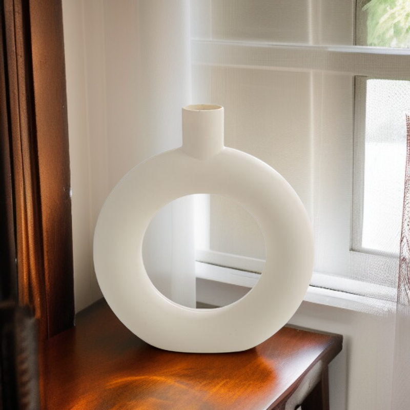 Barva: bílá keramická váza na víno, bílá keramická váza s kruhy
